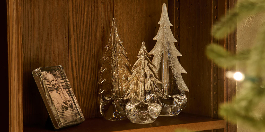 From handblown glass pieces by Simon Pearce to crystal decanters or whiskey glasses, barware feels celebratory, timeless and giftable.
