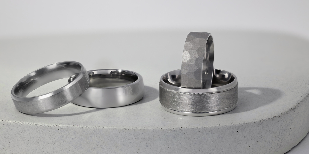 Both are popular, but satin finishes are often preferred for men’s wedding bands because of their low-shine appearance and ability to conceal everyday wear better than polished finishes.