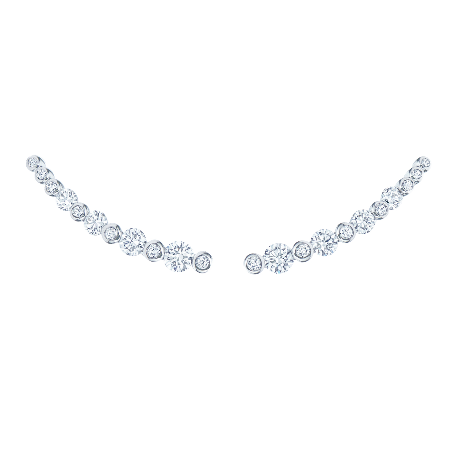 Turn heads with these diamond climber earrings from Kwiat's Starry Night collection. Fashioned in 18K white gold, the earrings feature alternating bezel set and prong set round diamonds on a gently curved bar.All white gold and sterling silver is presumed to be rhodium plated